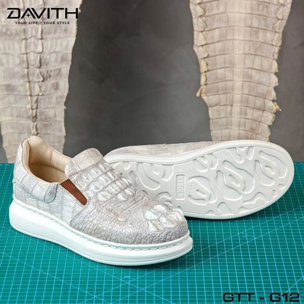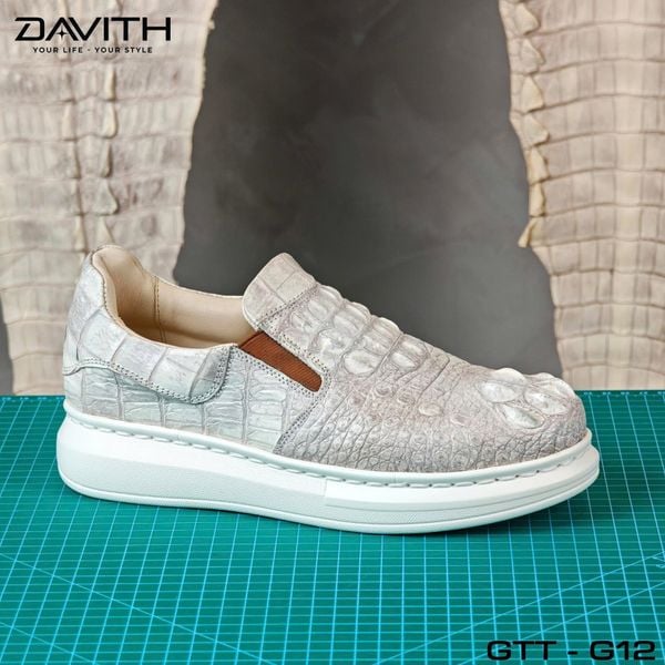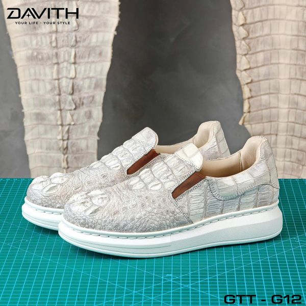 [DAVITH LEATHER] – Giày thể thao không dây cao cấp da gù cá sấu bạch tạng loại 1 – GTT-G12– Xuất xứ: Việt Nam