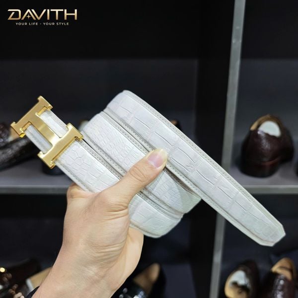 [DAVITH LEATHER] – Thắt lưng da bụng cá sấu bạch tạng cao cấp DBT– Xuất xứ: Việt Nam